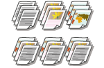 Wenn Sie zwei oder mehr Kopien über die Zufuhr kopieren, können Sie die Sortierung oder Gruppierung für die Reihenfolge der Ausdrucke auswählen. Wählen Sie "Sortieren", um die Sätze mit aufeinanderfolgenden Seiten zu drucken. Wählen Sie "Gruppieren", um jede Seite gebündelt zu drucken (also 10 Blätter für die erste Seite, 10 Blätter für die zweite Seite usw.).