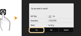 Wenn Sie das Senden eines Faxes sofort nach der Auswahl von <Start (Start)> abbrechen möchten, wählen Sie im Display <Abbrechen (Cancel)>, oder drücken Sie auf