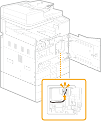 Befestigen Sie den Druckkopfanschluss am Kabelhaken.