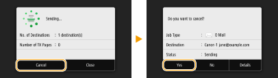 Wenn Sie das Senden eines Dokuments sofort nach der Auswahl von <Start (Start)> abbrechen möchten, wählen Sie auf dem Display <Abbrechen (Cancel)> oder drücken Sie