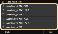 Wählen Sie einen Wireless LAN-Router, und wählen Sie <Details (Details)>. Wählen Sie
