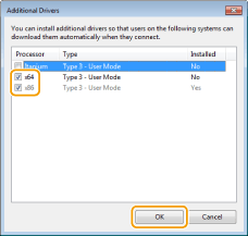 Aktivieren Sie das Kontrollkästchen für die verwendete Systemarchitektur der anderen Computer, und klicken Sie auf [OK (OK)].