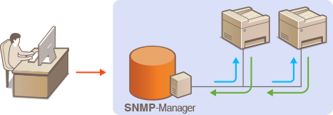 Mit SNMP können die Druckerverwaltungsinformationen wie Druckprotokolle und Druckerports regelmäßig von einem Computer im Netzwerk abgerufen und überwacht werden.