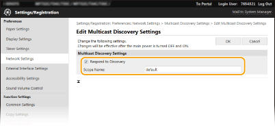 Wählen Sie [Einstellungen Multicast Discovery (Multicast Discovery Settings)]