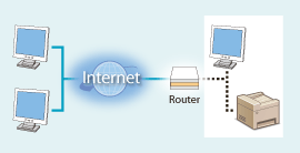 Una dirección IP es una etiqueta numérica asignada a cada dispositivo que participa en una red informática. Una "dirección IP global" se utiliza para la conexión de comunicación a Internet, y una "dirección IP privada" se emplea para la comunicación dentro de una red de área local, como puede ser una red LAN dentro de la empresa. Si se asigna una dirección IP global, su impresora/equipo multifunción estarán abiertos al público y podrá accederse a ellos a través de Internet. Así pues, el riesgo de fugas de información debido a acceso no autorizado desde la red externa aumenta. Por otro lado, si se asigna una dirección IP privada, su impresora/equipo multifunción estarán cerrados a una red de área local y únicamente se podrá acceder a ellos por parte de los usuarios de su red de área local, por ejemplo una red LAN dentro de la empresa.