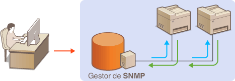 Con SNMP, la información de gestión de la impresora, como por ejemplo los protocolos de impresión y los puertos de la impresora, puede supervisarse y obtenerse con regularidad con la ayuda de un ordenador de la red.