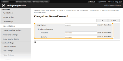 Syötä käyttäjänimi käyttämällä aakkosnumeerisia merkkejä. [Muuta salasana (Change Password)]