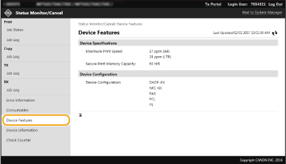 Valitse pysäytetyn asiakirjan tai turvatulostusasiakirjan [Työnumero (Job Number)], jos haluat nähdä tarkat tiedot. Voit tarkistaa tulostetun asiakirjan käyttäjänimen ja sivumäärän.