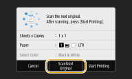 <Automaattinen paperin valinta (LTR/LGL) (Auto Select Paper (LTR/LGL))> ei ole käytettävissä silloin, kun alkuperäistä asiakirjaa ei ole lisätty syöttölaitteeseen.