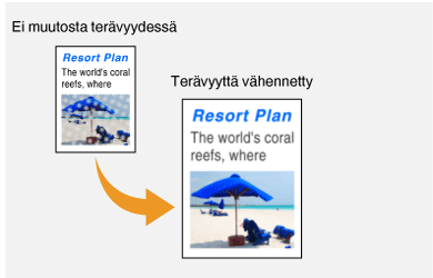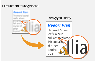 Voit säätää kopioidun kuvan terävyyttä. Lisää terävyyttä, kun haluat tarkentaa sumeaa tekstiä tai viivoja, tai vähennä terävyyttä, kun haluat parantaa lehtikuvien ulkoasua.