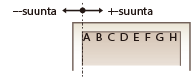 Määritä tulostuskohdan siirron suunta ja leveys. Asetuksen +- tai –-arvo määrittää sidontareunan, jota pitkin sidontareunus määritetään. Sidontareunusta voidaan säätää 0,5 mm (0,01 tuumaa) portain.