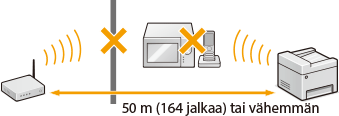Onko laitteen ja langattoman reitittimen välissä joitain esteitä, esimerkiksi seinä?