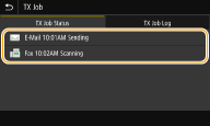 Valitse asiakirja, jonka tilan haluat tarkistaa, <Lähetystyön tila (TX Job Status)> ‑välilehdestä.