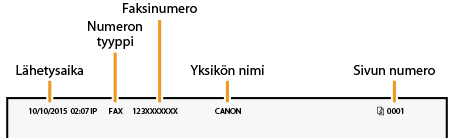 Tallenna laitteesi faksinumero ja nimi. Nämä tiedot tulostetaan kaikkien laitteesta lähetettävien sivujen yläreunaan.