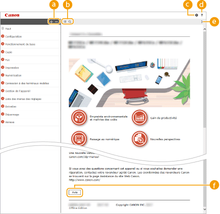 Cliquez ici pour afficher les informations indiquant comment feuilleter le Manuel en ligne, effectuer une recherche et obtenir d'autres renseignements.