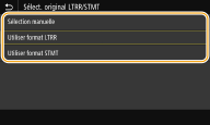Sélectionnez<Sélection manuelle>, <Utiliser format LTRR> ou <Utiliser format STMT>