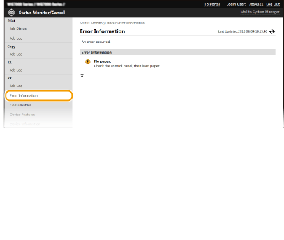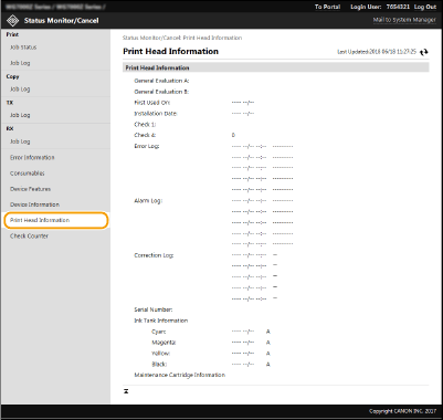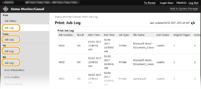 A [Munkaszám (Job Number)] elemre kattintva részletes információkat tekinthet meg a felfüggesztett és a védett dokumentumokról. Ellenőrizheti a felhasználónevet és a kinyomtatott dokumentum oldalszámát.