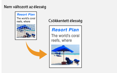 Beállíthatja a másolt kép élességét. Elmosódott szöveg és vonalak élesítése céljából növelhető, az újságfényképek megjelenésének javítása érdekében pedig csökkenthető az élesség.
