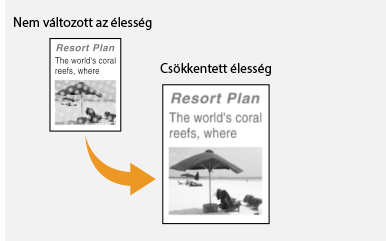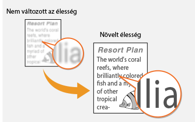 Beállíthatja a kép élességét. Elmosódott szöveg és vonalak élesítése céljából növelhető, az újságfényképek megjelenésének javítása érdekében pedig csökkenthető az élesség. Képélesség beállítása