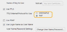 Selezionare la casella di controllo [Utilizzo TTLS (Use TTLS)] o [Utilizzo PEAP (Use PEAP)].