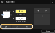 I formati carta registrati con la procedura sopra descritta possono essere richiamati quando <Formato personalizzato (Custom Size)> viene selezionato sulla schermata di selezione del formato carta per il cassetto della carta o il vassoio multiuso.