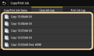 Quando <Visualizzazione registro lavori (Display Job Log)> è impostato su <Off (Off)>, non è possibile controllare il registro dei lavori di copiatura. <Visualizzazione registro lavori (Display Job Log)>