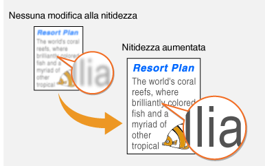 È possibile regolare la nitidezza dell'immagine copiata. Aumentare la nitidezza per ottenere righe e testo sfocati più precisi o diminuire la nitidezza per migliorare l'aspetto delle foto di riviste.