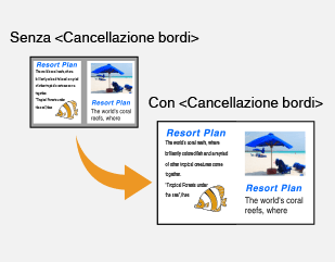 La larghezza del riquadro da eliminare è aumentata o ridotta in funzione dell'impostazione <Rapporto riproduz. (Copy Ratio)>.