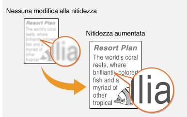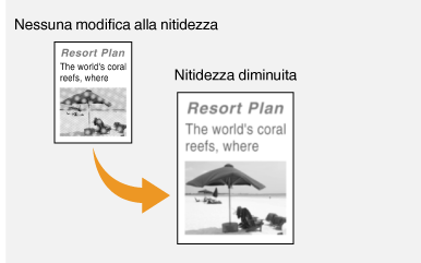 È possibile regolare la nitidezza dell'immagine. Aumentare la nitidezza per ottenere testo e linee sfocati più precisi o diminuire la nitidezza per migliorare l'aspetto delle foto di riviste. Regolazione della nitidezza