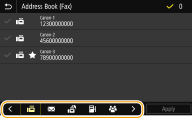 Se viene selezionata una destinazione da <Rubrica (Address Book)> nella schermata Schermata principale (Home), può essere visualizzata la schermata delle funzionalità di base per il fax mentre la destinazione selezionata rimane specificata.