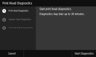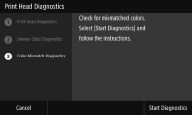 <Sì (Yes)> per completare la diagnosi della testina di stampa, la diagnosi dei colori e la diagnosi dei colori non corrispondenti e quindi visualizzare i risultati delle diagnosi. |