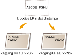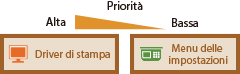 Se un'impostazione di stampa è specificata sia dal driver della stampante sia dal pannello operativo della macchina, la specifica dal driver della stampante è prioritaria rispetto a quella del pannello operativo. La specifica dal pannello operativo diventa efficace in alcuni casi, ad esempio quando si eseguono stampe PS/PCL o si stampa da UNIX o da altro sistema operativo sul quale i driver della stampante per la macchina non sono disponibili.