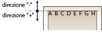 Per <Sfalsam. lato corto (anteriore) (Offset Short Edge (Front))>/<Sfalsam. lato corto (posteriore) (Offset Short Edge (Back))>, specificare un valore con segno "+" per spostare la posizione di stampa da sinistra a destra. Per <Sfalsam. lato lungo (anteriore) (Offset Long Edge (Front))>/<Sfalsam. lato lungo (posteriore) (Offset Long Edge (Back))>, specificare un valore con segno "+" per spostare la posizione di stampa dall'alto verso il basso. Per spostare nella direzione inversa, specificare un valore con segno "-".