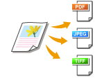 È possibile selezionare il formato file in cui i documenti originali devono essere acquisiti tra PDF/JPEG/TIFF. Per il formato PDF, è possibile selezionare PDF Compact che riduce la dimensione dei dati o il formato PDF che permette la ricerca testuale includendo dati di testo acquisiti con l'OCR (riconoscimento ottico dei caratteri). È inoltre possibile creare un file PDF più sicuro grazie alla crittografia dei dati o all'aggiunta di una firma.