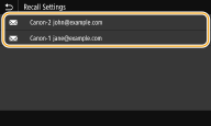 È possibile selezionare una destinazione tra quelle già utilizzate. Quando si specifica una destinazione utilizzata in precedenza, la macchina imposta anche gli stessi parametri di scansione, come la densità, utilizzati per l'ultimo invio di documenti a tale destinazione.