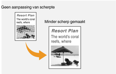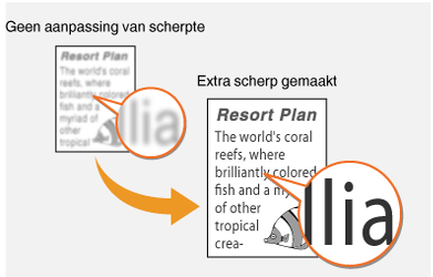 U kunt de scherpte van de afbeelding aanpassen. Stel de scherpte hoger in om onscherpe teksten en lijnen te verscherpen of stel deze lager in om de weergave van tijdschriftfoto's te verbeteren. Scherpte aanpassen