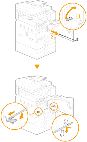 Open de klep aan de voorzijde als <Voorklep openen (Open Front Cover)> wordt weergegeven.
