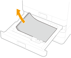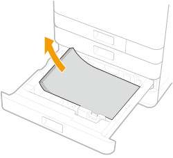 Als er papier is vastgelopen, trekt u dit voorzichtig naar buiten in de richting van de pijl.