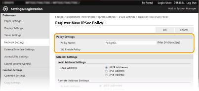 Tast inn alfanumeriske tegn i tekstboksen [Policynavn (Policy Name)] for et navn som skal brukes til å identifisere policyen.