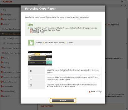 Når du klikker på ikonet, kan det hende at siden blir mørk og et hurtigvindu vises. Hvis du vil gå tilbake til siden, må du klikke på [Lukk] i hurtigvinduet.