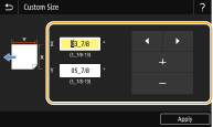 / for å flytte markøren mellom sifrene, for å legge inn heltall og brøker.![]() ![]() Hvis du registrerer papirformatene du bruker ofte på knappene <S1 (S1)> til <S3 (S3)>, kan du hente dem frem med ett trykk. Registrer en egendefinert papirstørrelse