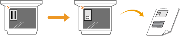 Du kan bruke <ID-kortkopi (ID Card Copy)> til å kopiere front- og baksidene av et kort på samme side av en ark. Denne funksjonen er nyttig når du kopierer et førerkort eller et ID-kort.