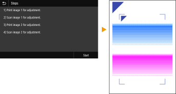 Justeringsbildet skannes, og justeringen starter. Deretter skrives det andre justeringsbildet ut.
