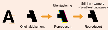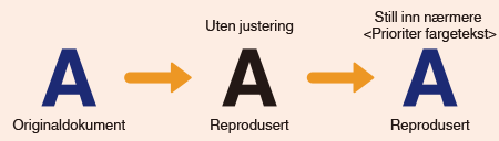 Du kan justere slik at svart eller nesten svart tekst gjengis i en farge som er temmelig nær originalen som ble skannet.