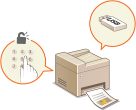 Du kan tildele en PIN-kode for å øke sikkerheten eller skrive ut filer som er lagret på en USB-minneenhet direkte.