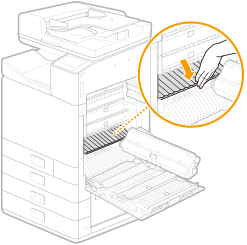 Bekreft før håndteringFør du starter operasjonen for å fjerne fastkjørt papir, bekreft at dekslene og papirskuffene til maskinen og ekstrautstyr er lukket.