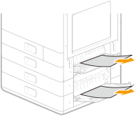 Bekreft før håndteringFør du starter operasjonen for å fjerne fastkjørt papir, bekreft at dekslene og papirskuffene til maskinen og ekstrautstyr er lukket.