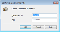 Quando você tenta imprimir ou enviar um fax de um computador quando o Gerenciamento de IDs do departamento estiver ativado, a seguinte tela pop-up é exibida (a menos que a caixa de seleção [Confirmar ID/PIN do departamento ao imprimir (Confirm Department ID/PIN When Printing)]/[Confirmar ID/PIN do departamento ao enviar faxes (Confirm Department ID/PIN When Sending Faxes)] esteja limpa):
