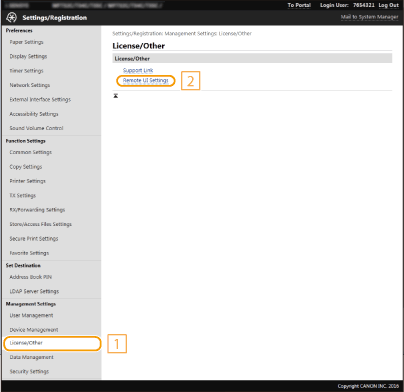 Usando o painel de operaçõesTambém é possível ativar ou desativar a comunicação codificada do TLS no <Menu (Menu)> da tela Início (Home). <Interface Remota (Remote UI)>