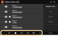Você pode alterar as configurações, tais como alterar um número de fax ou nome registrado, alterar o tipo de destino registrado como um número de fax para um destino de e-mail, alterar um número de discagem codificada, e adicionar ou excluir destinos do grupo. Você também pode excluir destinos ou grupos.